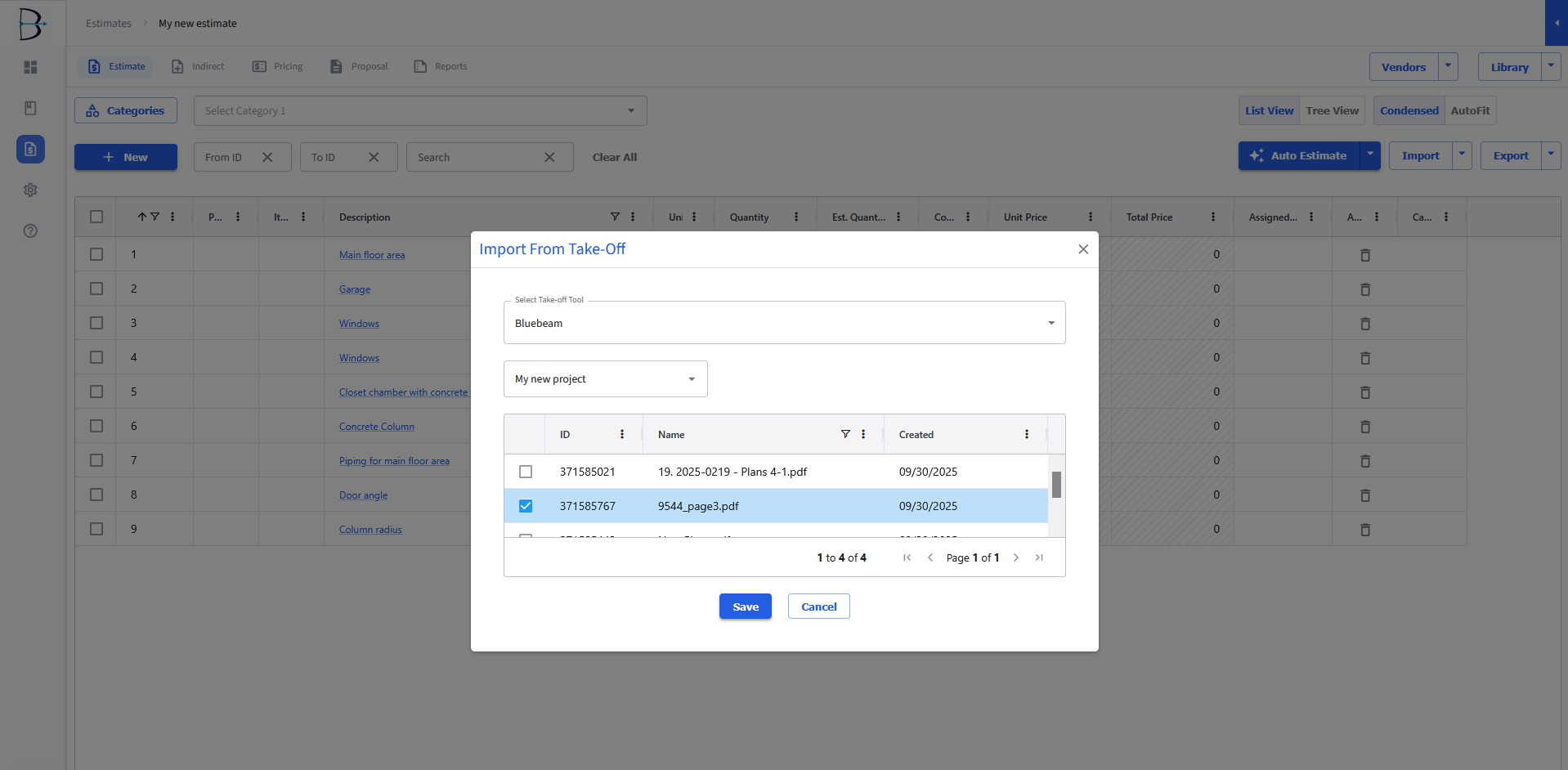 The BidBow + Bluebeam Integration transfers takeoff data (markup items, units, and measurements) directly from Bluebeam into BidBow. This eliminates manual re-entry, ensuring estimates are built faster, more accurately, and always based on the latest project takeoff.