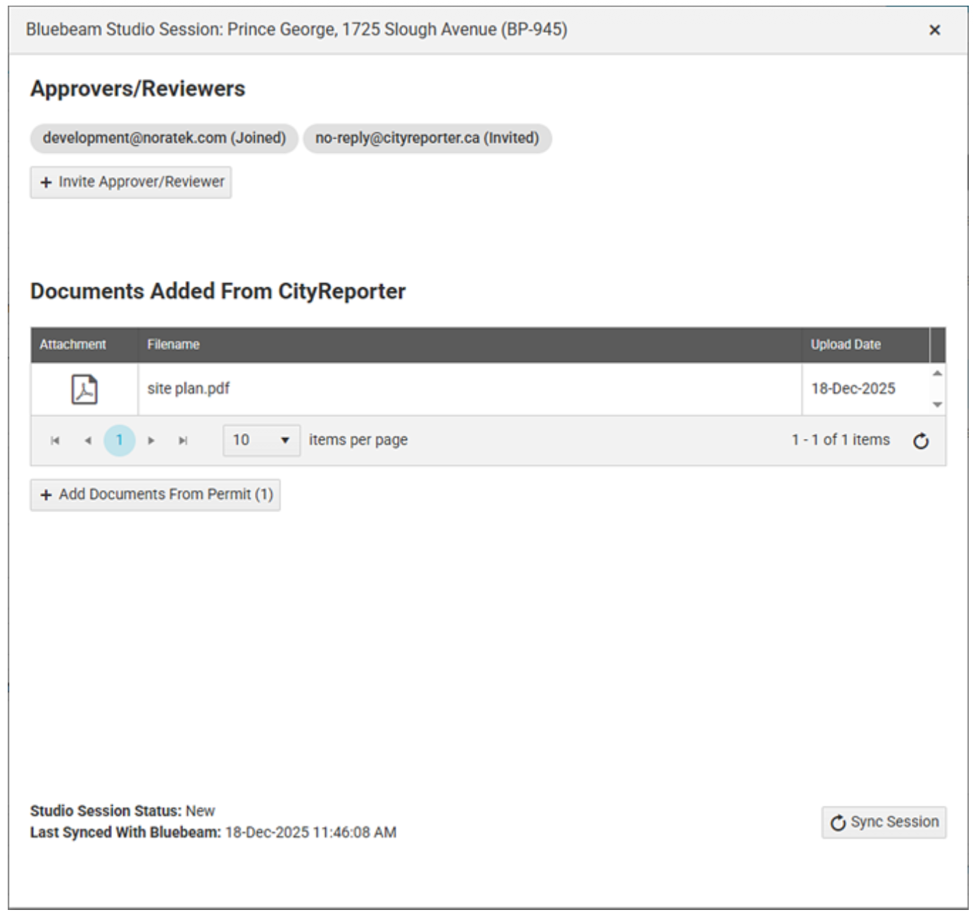 Seamlessly integrate CityReporter Permit module with Bluebeam Studio, allowing you to select PDFs from a permit, create a Studio Session and invite users to collaborate in real time, improve workflow and markup the documents.